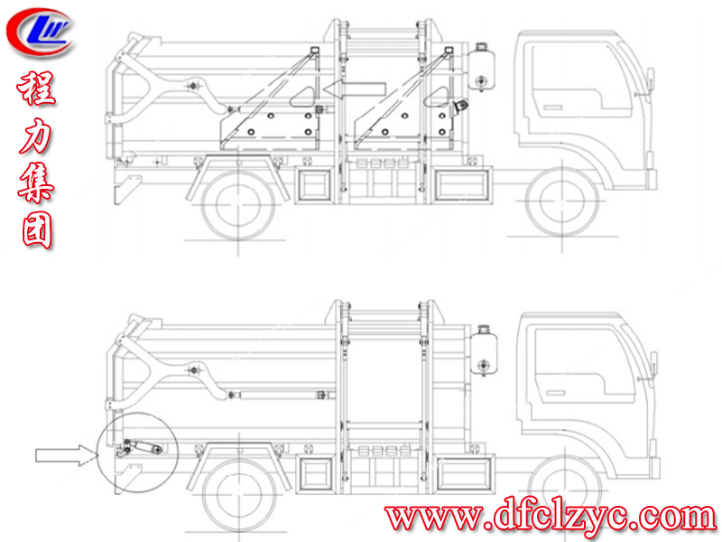 注意:操作員可根據(jù)該車的裝載能力及效果,適當?shù)目刂蒲b載次數(shù)和推移壓力,使該車的裝載效果達到良好狀態(tài),切勿強行推壓而造成箱體機構或其它損壞!